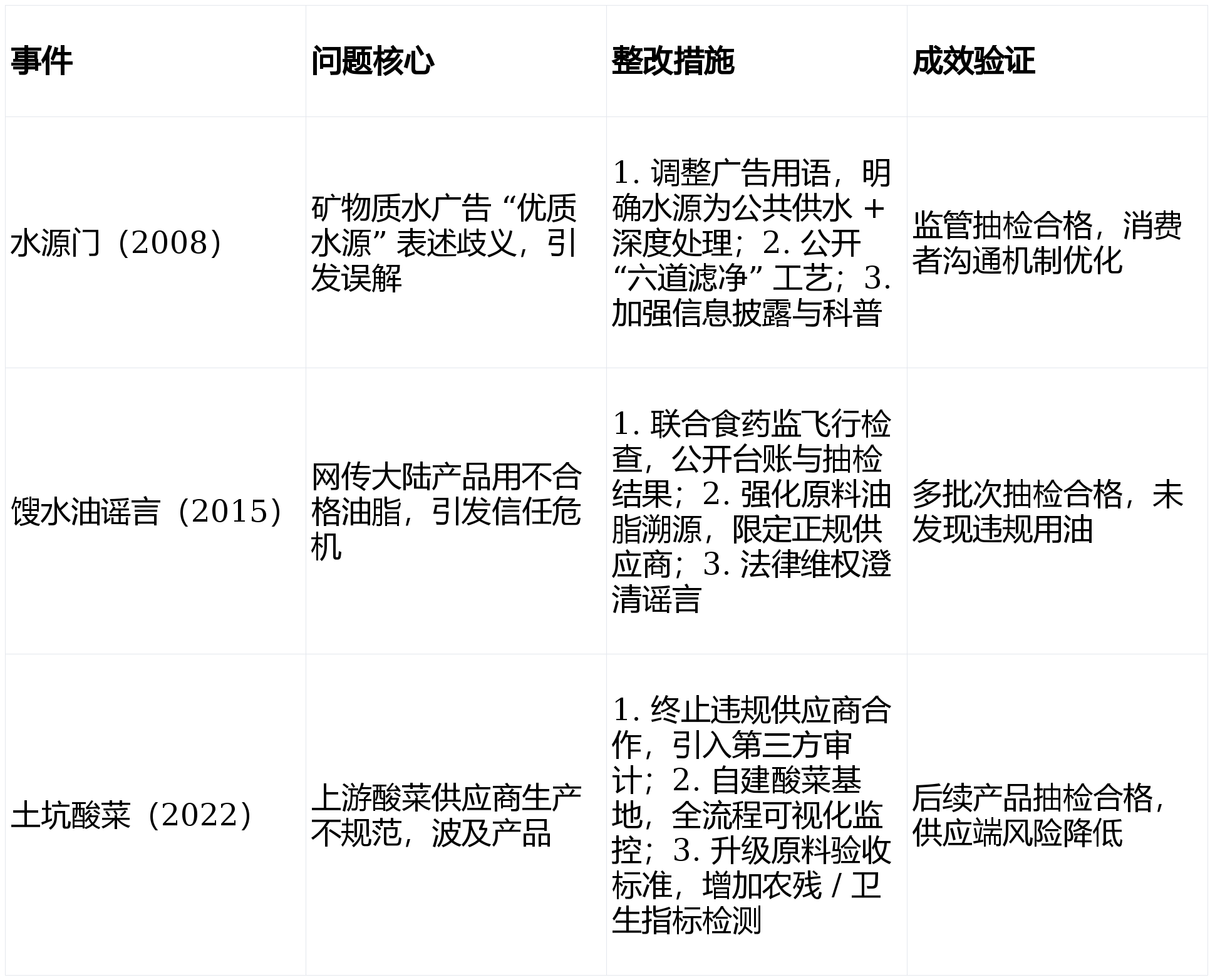 自动接管监管取监视。过往质量问题多聚焦供应链取消息披露,虫鼠害、水质、人员卫生全流程记实。添加 “周排查、月安排” 频次。实现原料 - 出产 - 终端快速定位,尝试室获 CNAS 承认。检测数据,按期外部审核。目标严于国标。支撑精准召回。引入第三方审计。年度审核 + 驻场核查,支撑召回。溯源强化:MRP 逃溯系统笼盖全批次,适配行业监管取消费需求。过往问题整改聚焦供应链、消息披露取尺度升级。康师傅过) “三道防地 + 全流程 HACCP + 数字化逃溯” 建立闭环管控,